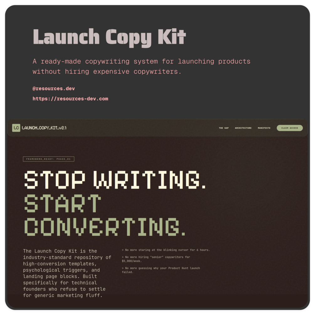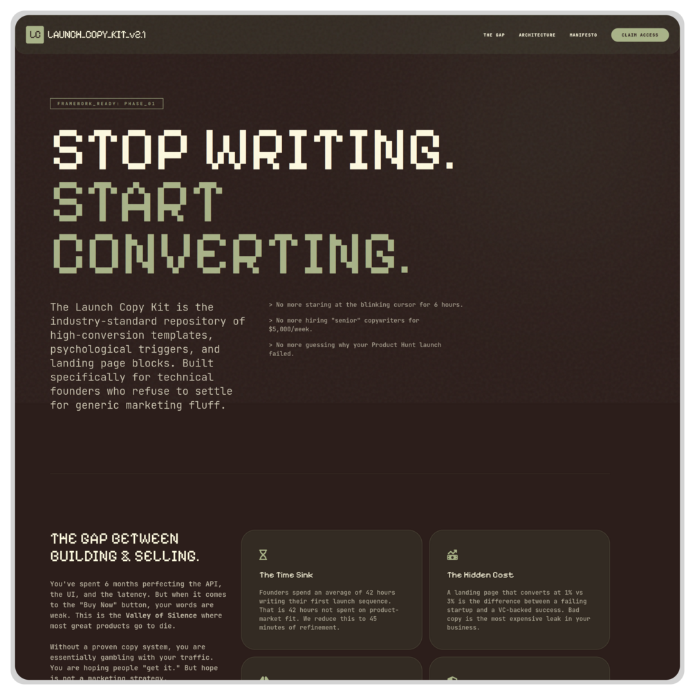 Launch Copy Kit is a copy-first landing page template built for founders who want conversions without hiring expensive copywriters.
