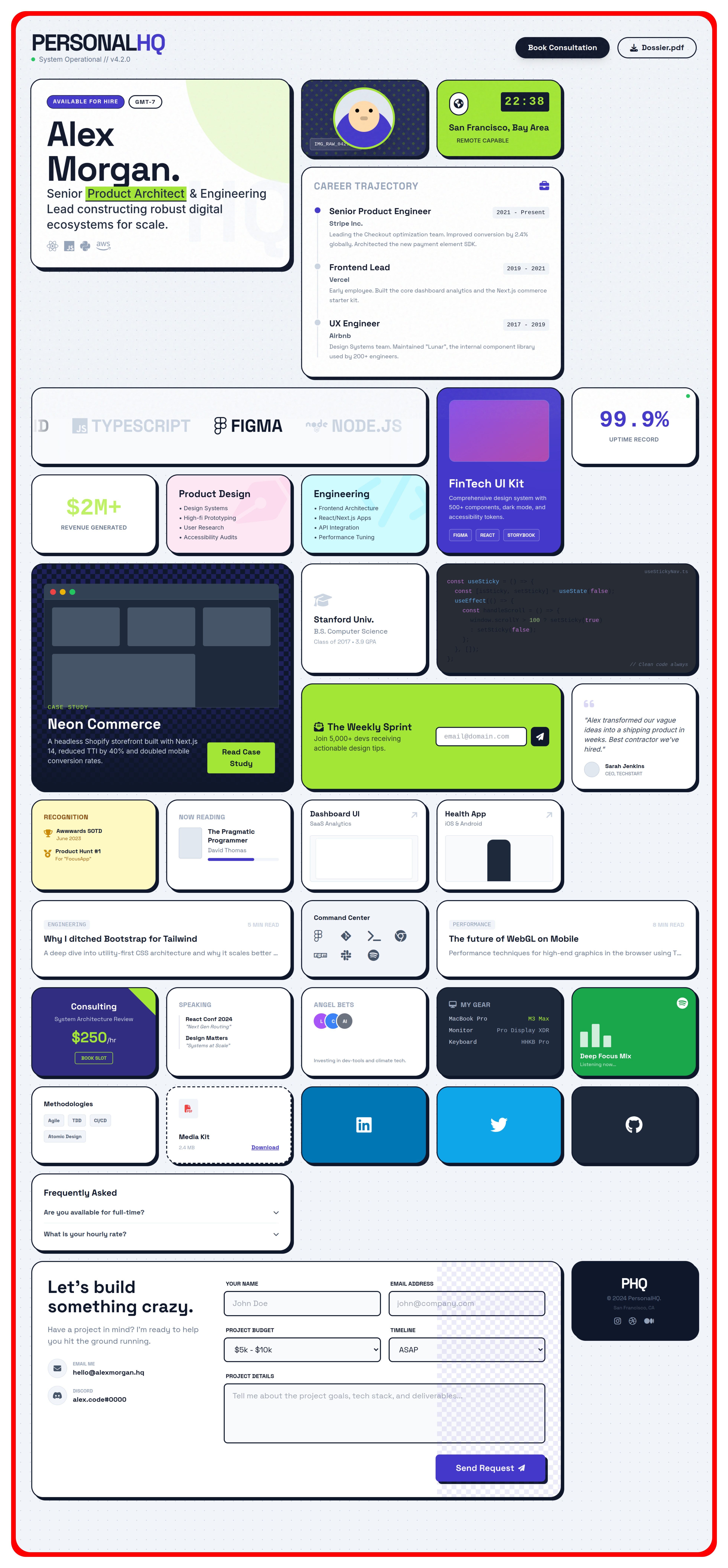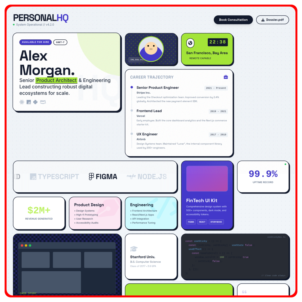 PersonalHQ is a fully-designed, modern personal website template built specifically for developers, indie hackers, freelancers, and technical creators who want a single home on the internet that actually does something — not just look pretty.