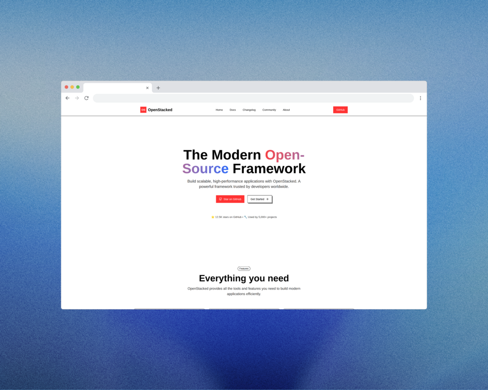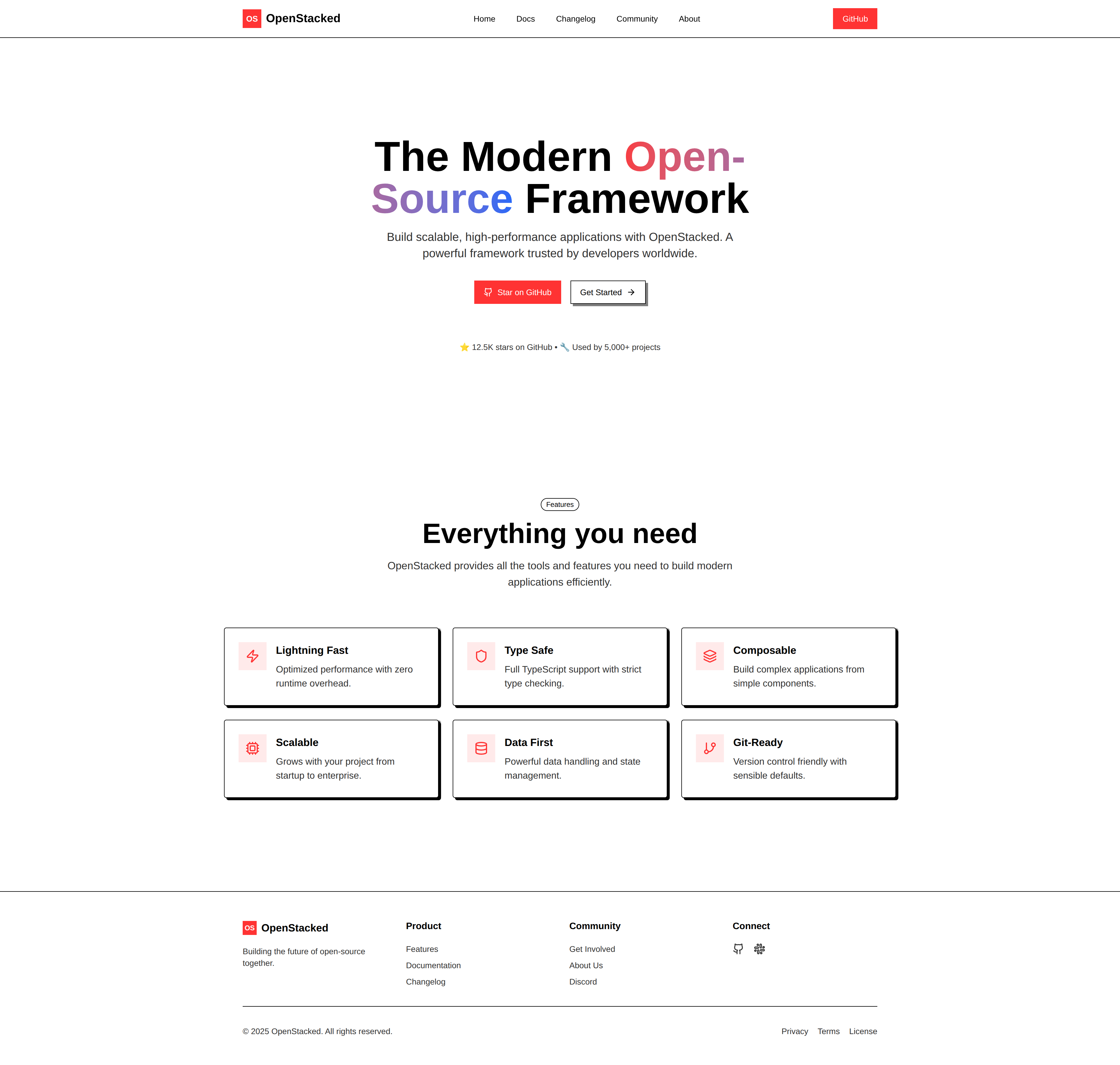 OpenStacked — Open Source Project Website Template