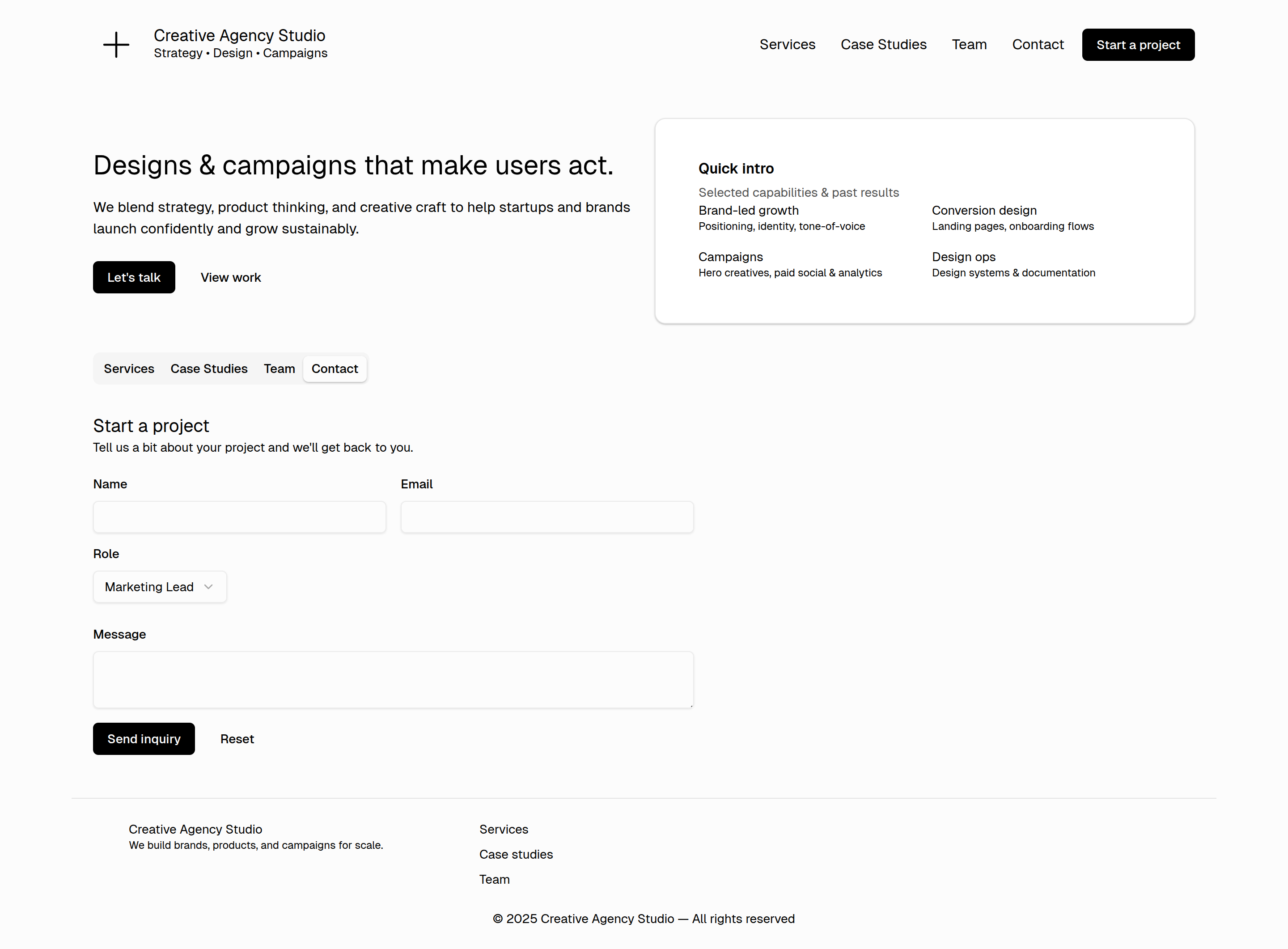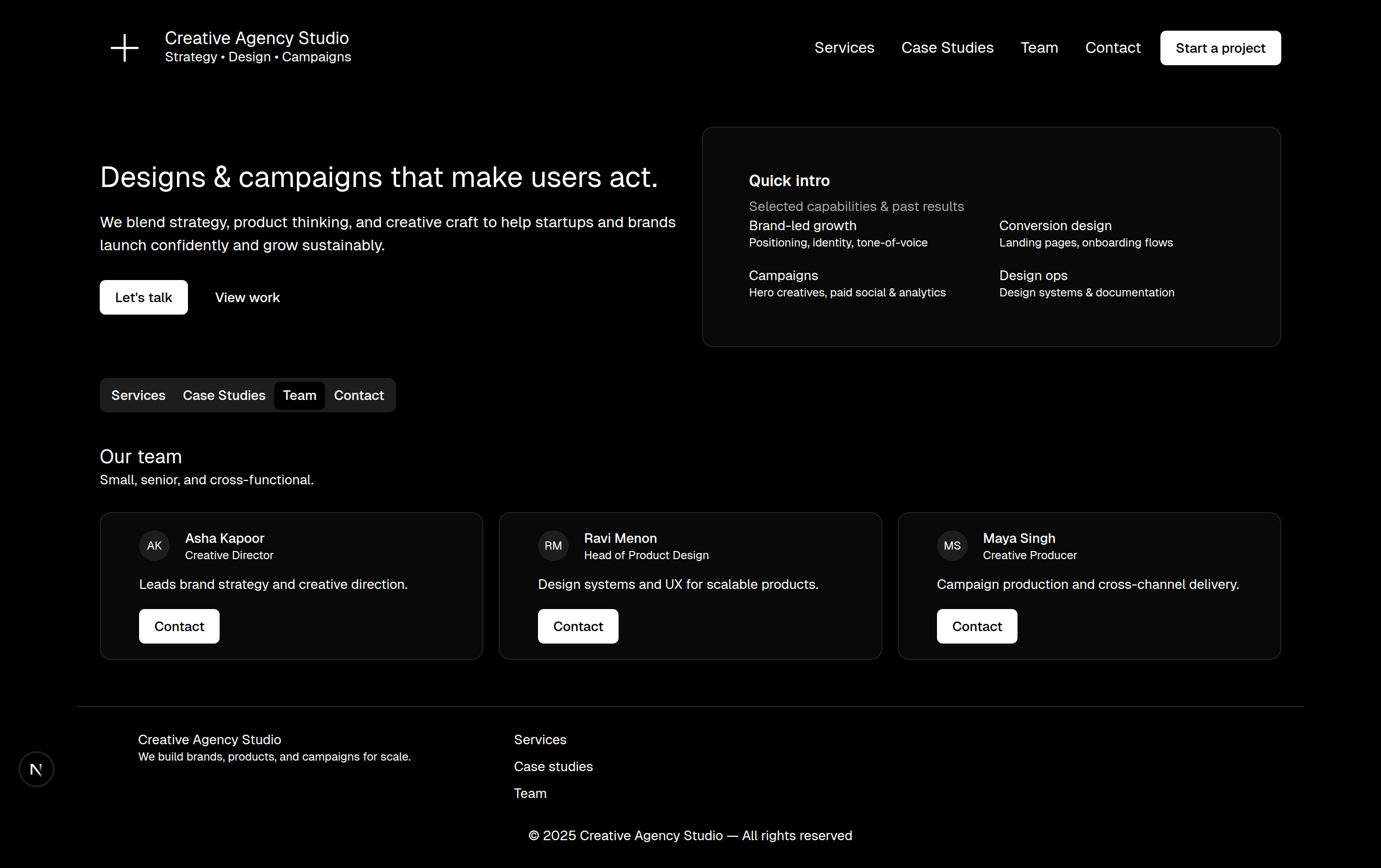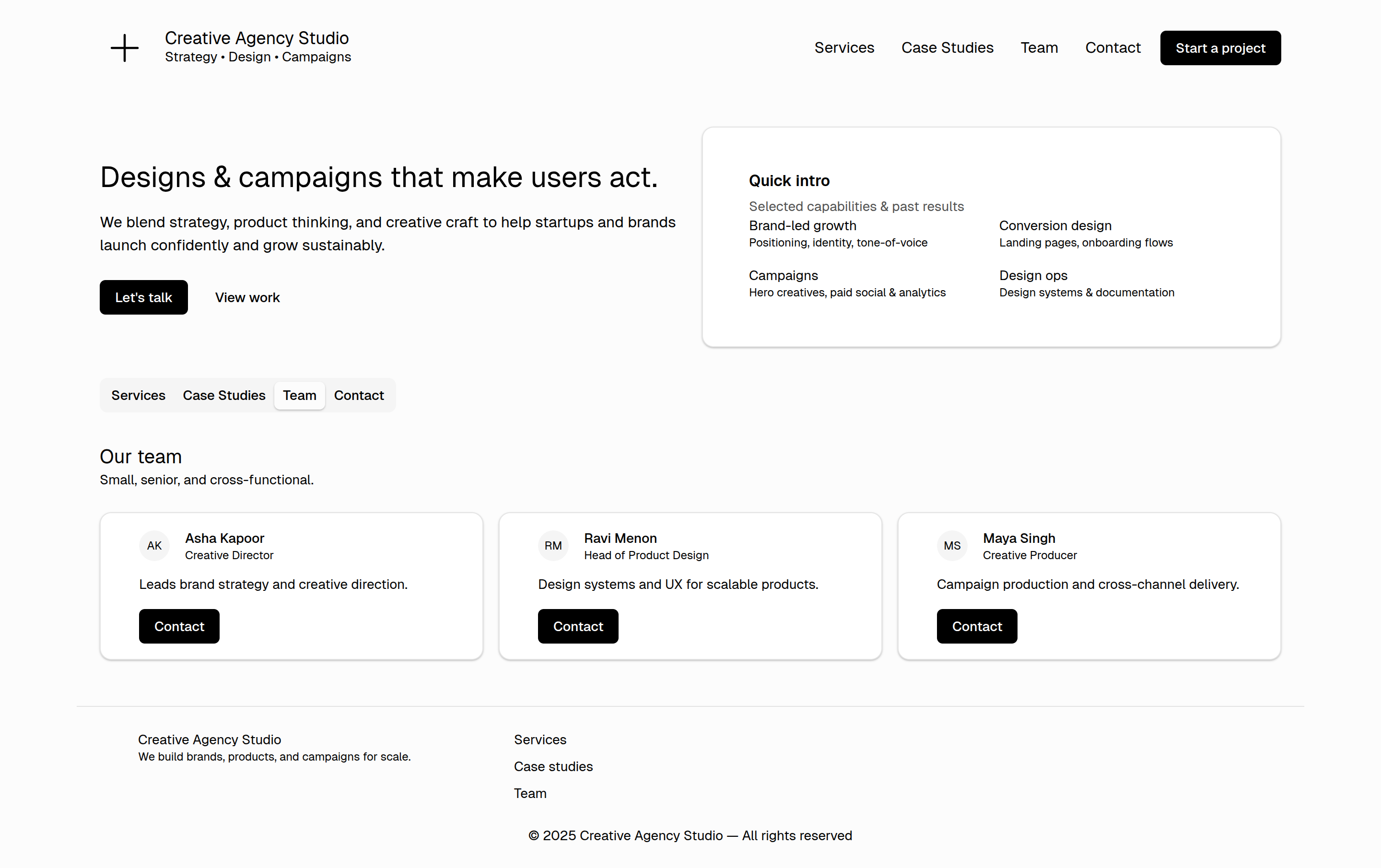 A modern, high-end Creative Agency Website Template built with React, ShadCN UI, Tailwind, and TypeScript.