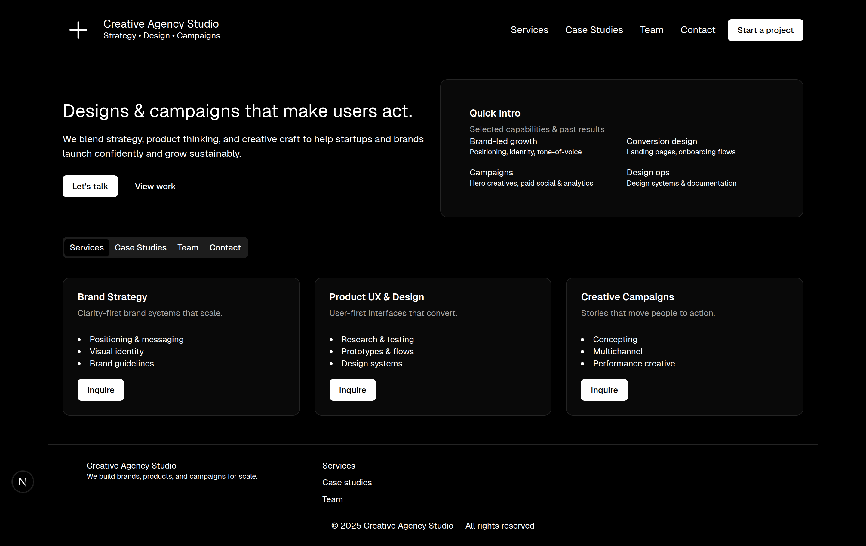 - Perfect foundation for a creative agency website