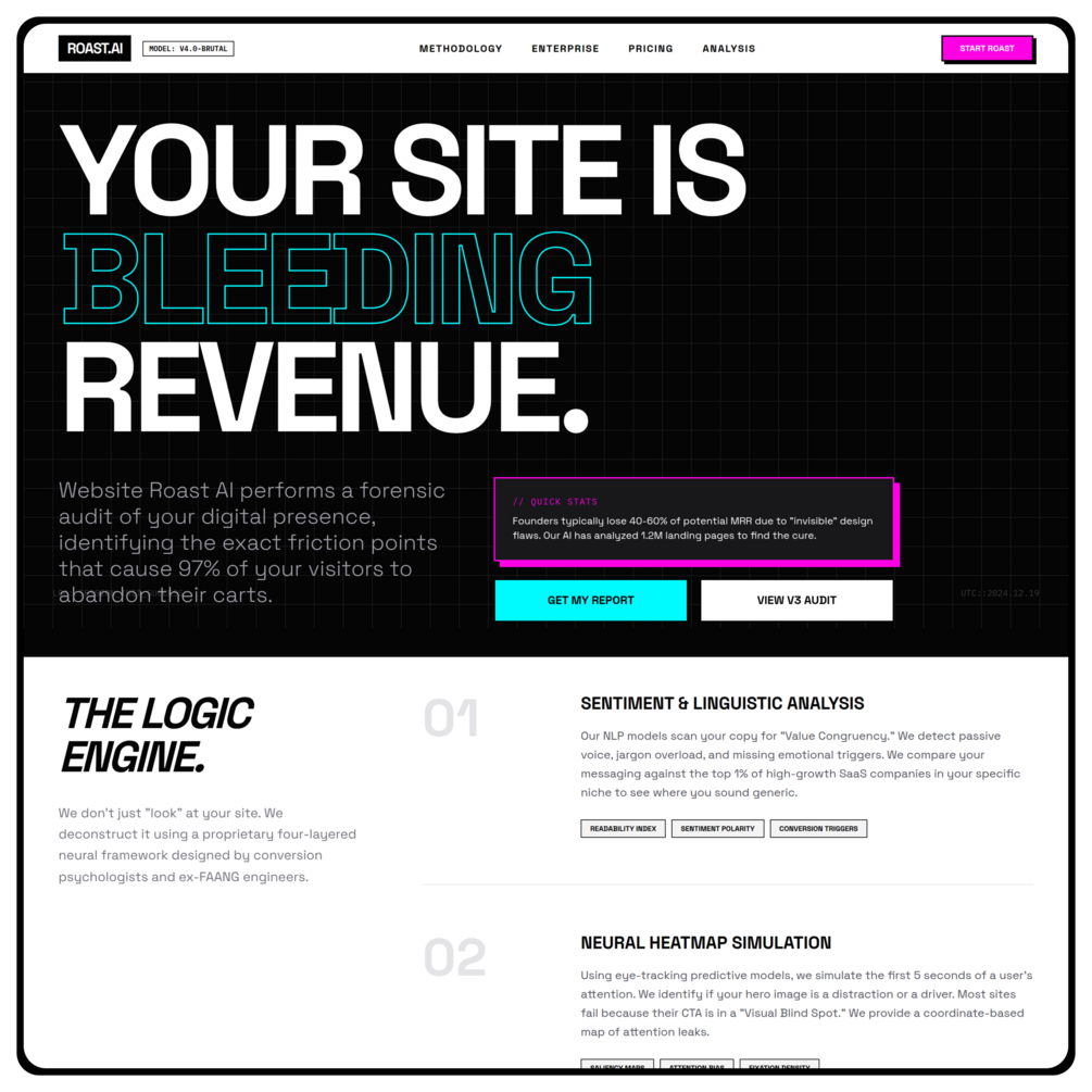 Website Roast AI — Brutal Conversion Audit Website Template for SaaS & Agencies
