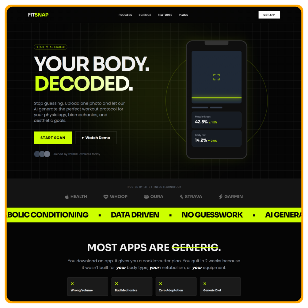 FitSnap AI — High-Impact AI Fitness App Landing Page (Tailwind + Modern UI)