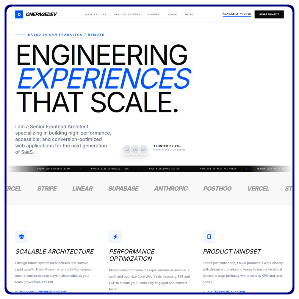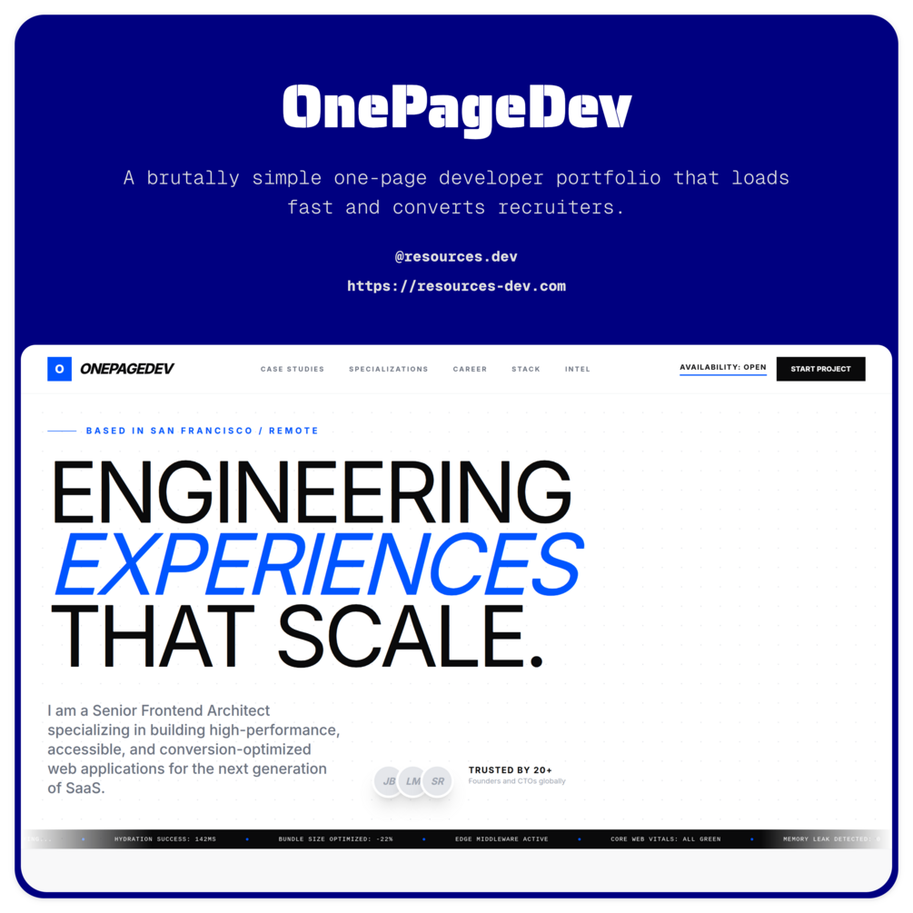OnePageDev is built for developers who want maximum credibility with minimum pages.