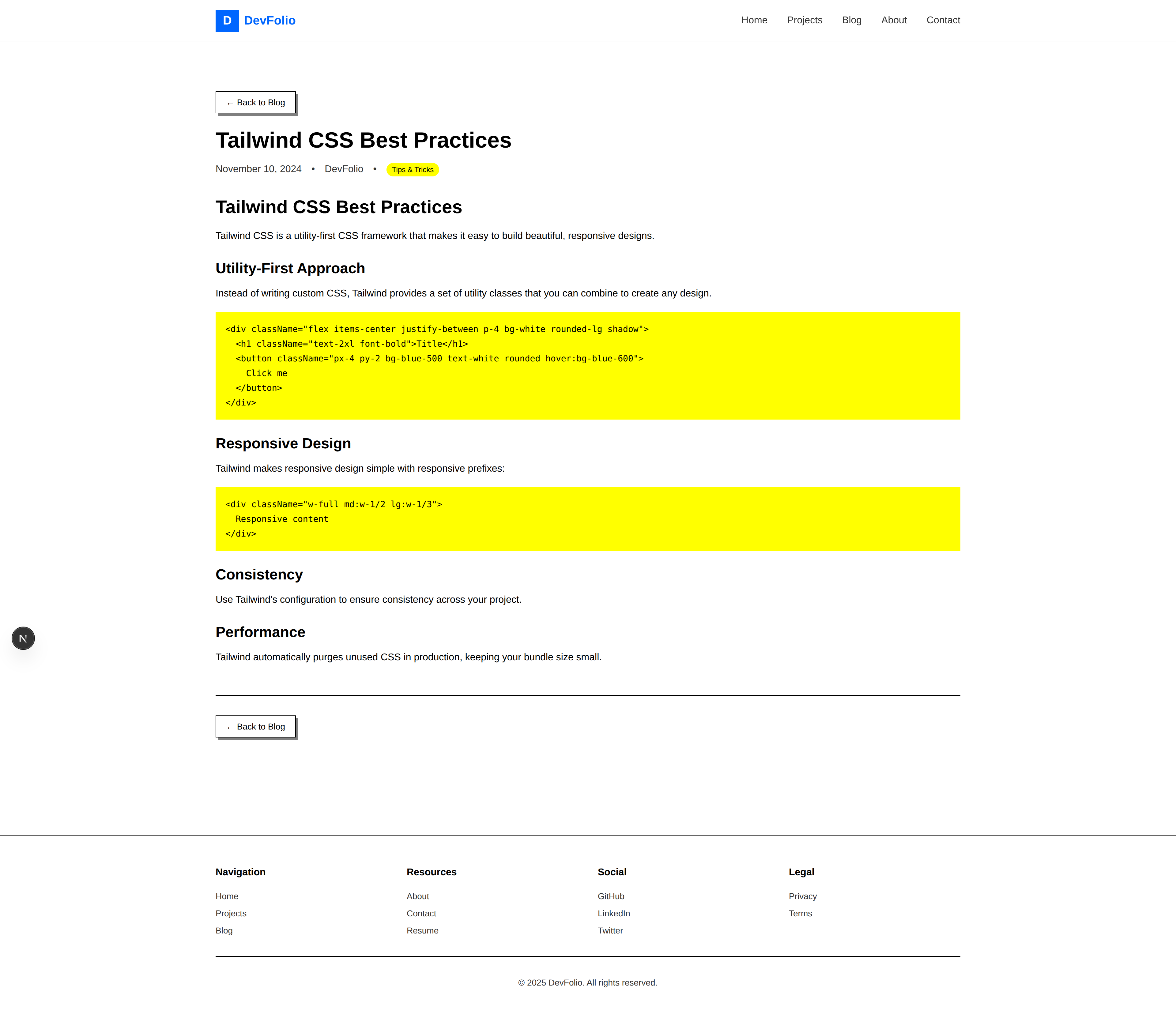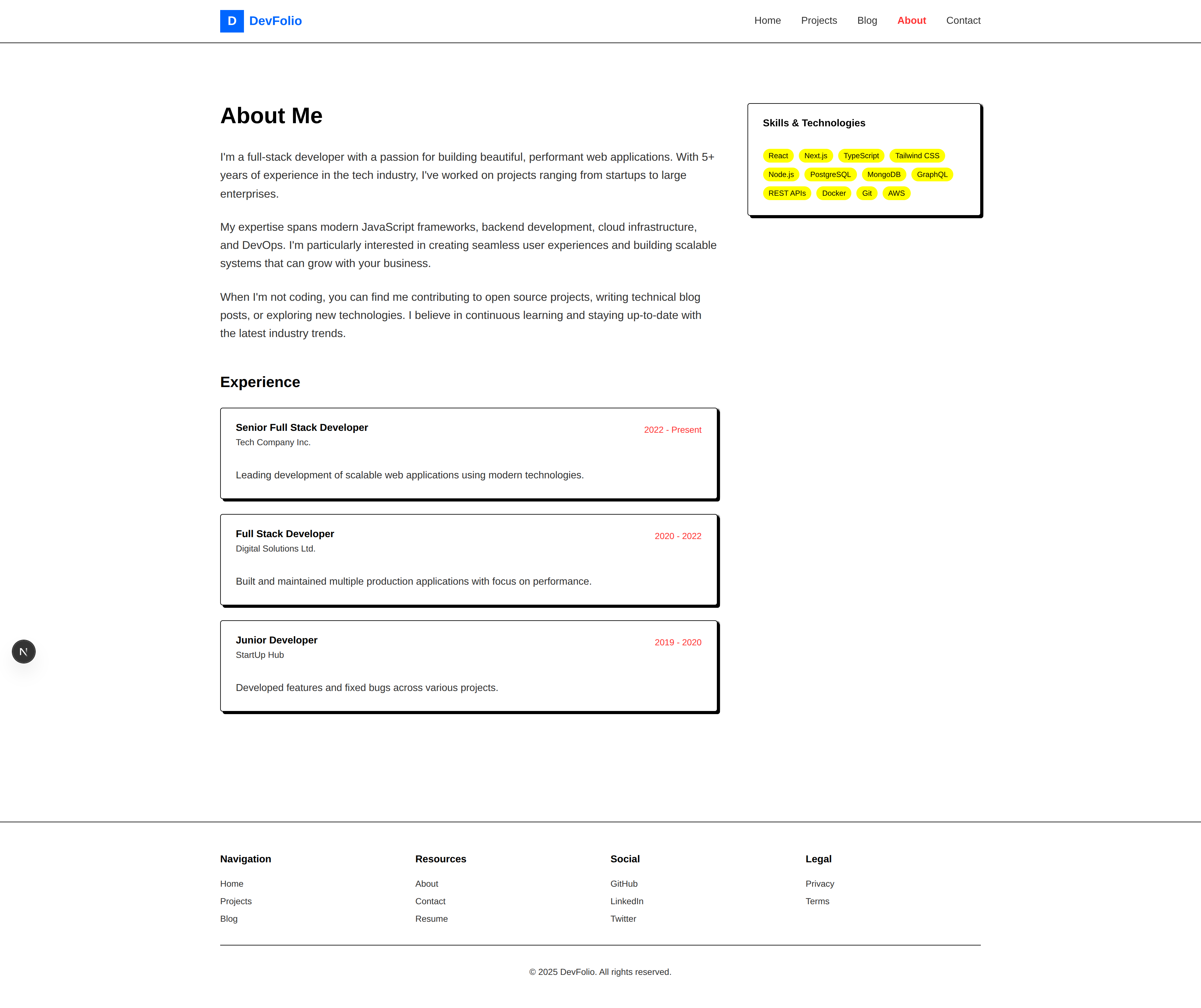DevFolio — Developer Portfolio & Blog Template